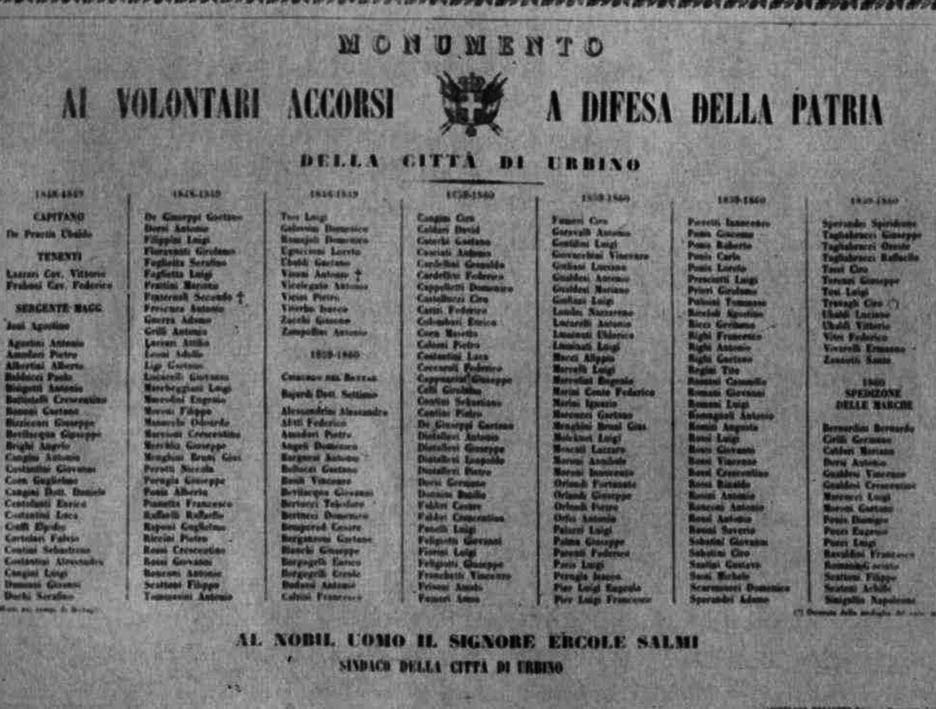 Elenco dei volontari urbinati che presero parte alle guerre e alle battaglie per l'Indipendenza.