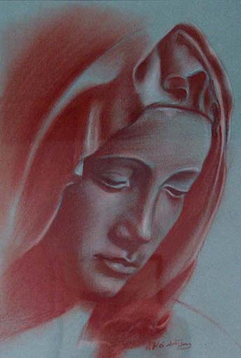 Madonna di Michelangelo - sanguigna e matita bianca su cartone grigio - 35 x 50 cm - 2006